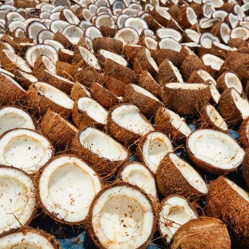 Copra is the dried meat of the coconut used primarily for oil extraction. It’s a major raw material in edible and industrial coconut oil production.